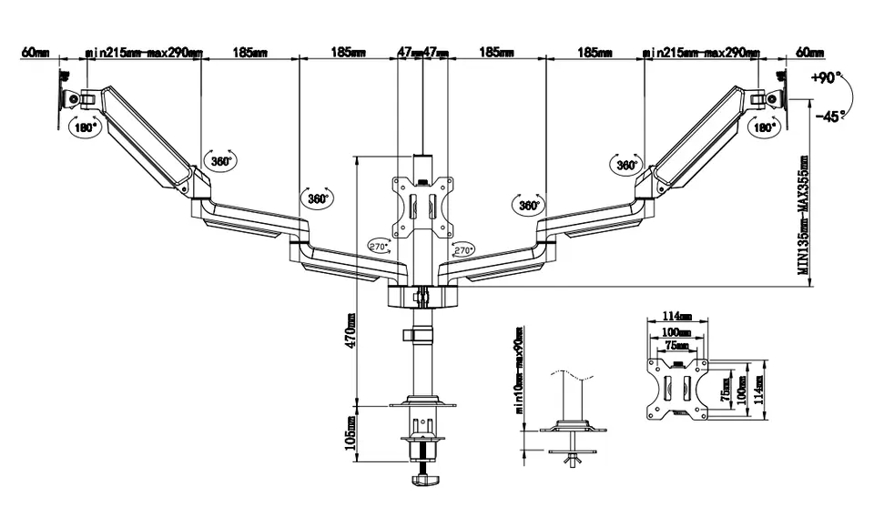 Suggested Desktop Thickness: | Clamp 10~50mm Grommet 10~50mm (Clamp 0.39"~2" Grommet 0.39"~2") |
