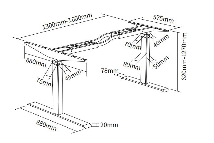 Dimension: | 1300~1600mmx880~620x1270mm" |